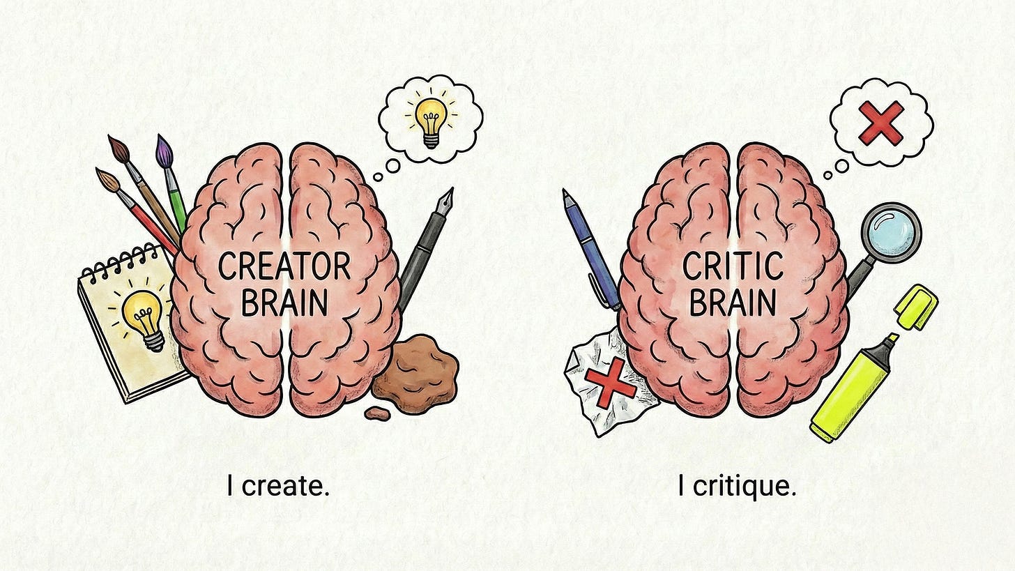 When I’m drafting, the Critic wants to polish the work in real time. It wants to protect the outcome before there’s anything even worth protecting.